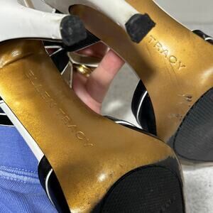 Ellen Tracy high heel strappy shoes black & white leather US 8M Boss Lady style