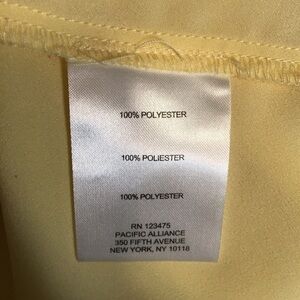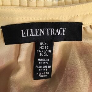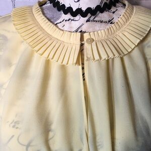 Soft yellow structured pleated ruffle neck and sleeve. Small button front neck. Gently preowned condition.