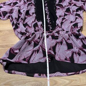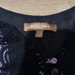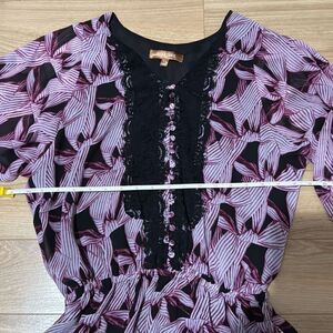 Ellen Tracy purple blouse size xs with cinched waist and lace front with purple florals