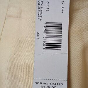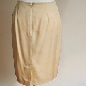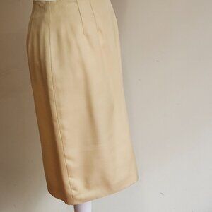 This ELLEN TRACY skirt in a petite size 6 is a stunning bright yellow silk garment perfect for a party or business occasion. The skirt features a solid pattern with a zipper closure, making it easy to put on and take off. With its straight and pencil style, it is a stylish and flattering addition to any woman's wardrobe. The skirt is lined and lightweight, making it comfortable to wear during the summer, fall, or spring seasons. Made in China, this skirt from the 90s theme offers a touch of elegance and sophistication to any outfit.