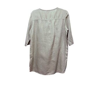 This stylish Ellen Tracy short sleeve top features a decorative zip front, crafted from 100% linen in a versatile army green. Perfect for casual outings or dressing up, it's designed for comfort and style. It is a true army green-photos do not depict true color. It has been steamed and comes from a smoke free home.