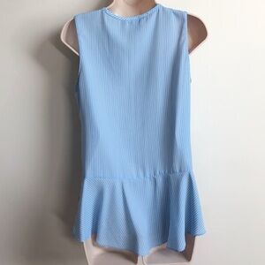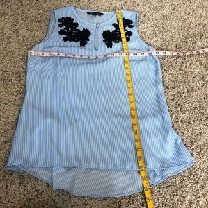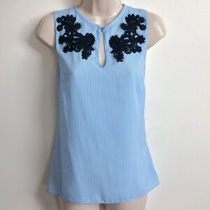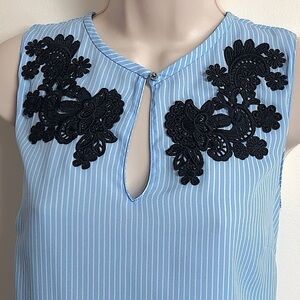 Ellen Tracy sleeveless blue pinstripe floral black blouse high low small