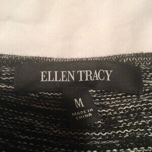 Ellen Tracy long line variegated tunic sweater M split hem black white grey soft cozy