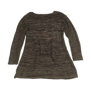 Ellen Tracy sweater Women Medium marled black gray split hem tunic top Lagenlook