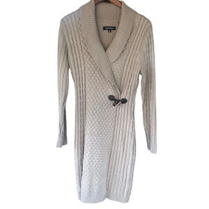 Ellen Tracy tan cable knit midi sweater Fall winter Thanksgiving dress