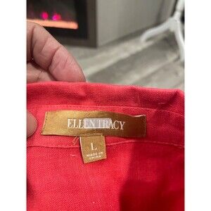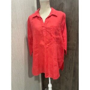 Ellen Tracy tunic top, 100% Linen, slip on, one pockets, 3/4 sleeve, Melon color