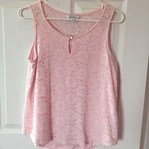 Beautiful Company by Ellen Tracy vintage 90's ballet pink lace top, size M, lace is a flower pattern, great condition, lace is 96% nylon/4% spandex and lining underneath is 100% polyester, color may vary from screen to real life