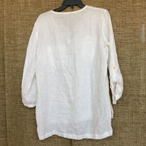 Ellen Tracy white linen tunic 30” long on the back, 20” pit to pit