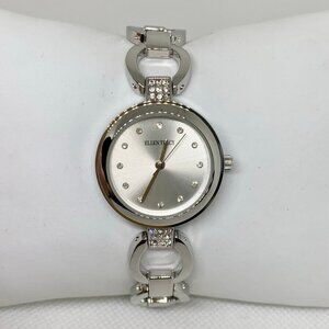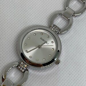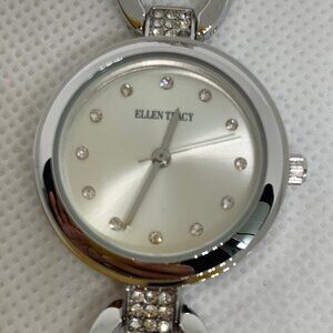 Ellen Tracy women watch silver tone rhinestones 28mm round up to 7.5” running