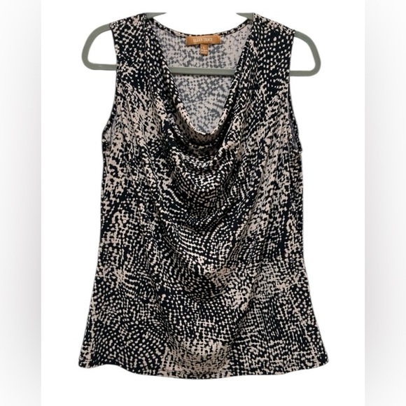 Ellen Tracy women’s Large cowl neck sleeveless black and tan blouse
