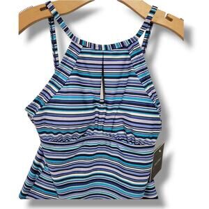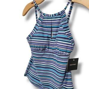 Ellen Tracy women's blue striped swimwear tankini top - size 6