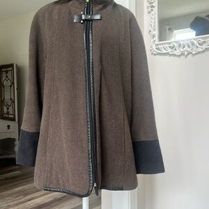 Ellen Tracy wool blend harness closure swing coat jacket size 12 P hooded