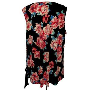 Ellen Tracy Black Tropical Floral Draped Neck Side Tie Sleeveless Top 2X NEW