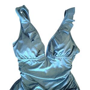 Ellen Tracy Laid Back Blue Ruffled Slimming One Piece Swimsuit Size 10 NWT