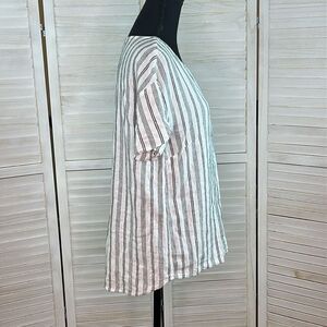 Ellen Tracy Linen Blend Ticking Stripe Tee Small