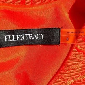 Orange textured cotton blend stretch sleeveless v-neck sheath dress with pockets and Back keyhole cutout by Ellen Tracy.