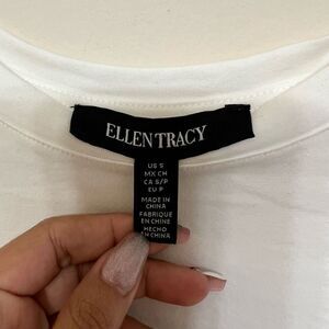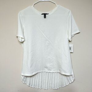 Ellen Tracy White Pleated Chiffon Crewneck Tee Small New