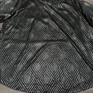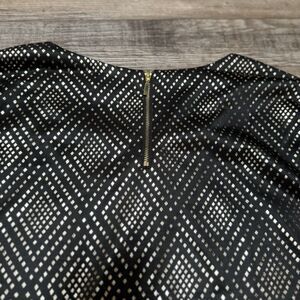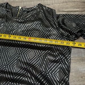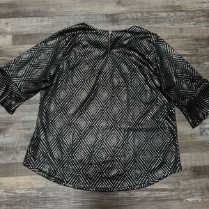 Ellen Weaver Top Womens 1X Plus Black Floral 3/4 Sleeve Zip Back Stretch Blosue