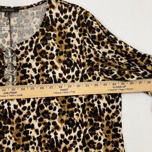Ellen Weaver size 2X Black Brown Leopard Print Keyhole Stretch Knit Pullover Top