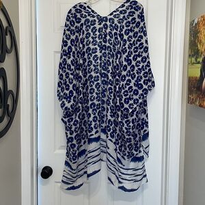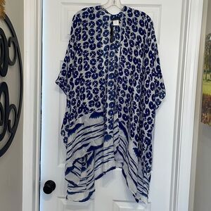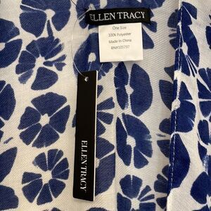 Ellen Tracy Blue & White Kimono Top, NWT. One size fits most. 100% polyester. Super cute! Could be worn as a layering piece or it would make a cute swim coverup!