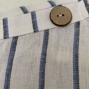 Ellen Tracy Linen Blend Loose Fitting White Blue Short Sleeve Blouse Size L