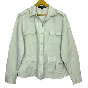 EllenTracy Linen Blend Utility Button Up Shirt Size 16 Pistachio Green Lagenlook