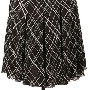 Brown white plaid crinkle pleated full silk skirt by Ellen Tracy.