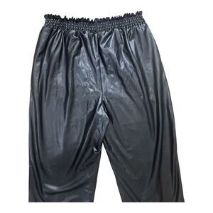Ellen Tracy Women Black Faux Leather Pants Size M Paper Bag Waist Stretch Pocket