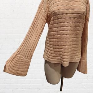 Ellen Tracy Women's Scoop Neck Peach Sweater with Bell Sleeves, Size Large