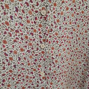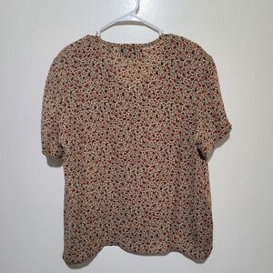 Elevate your wardrobe with this Ellen Tracy women's top. Featuring a vibrant red floral pattern, this top is perfect for any occasion. Enjoy the comfort and style that Ellen Tracy is known for. Made with all silk materials. Lightweight and flowy. Short sleeves. Botton closure. Excellent quality and condition.