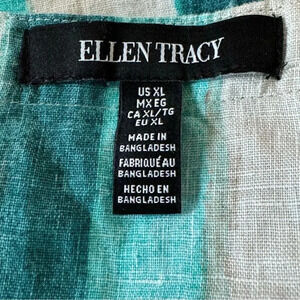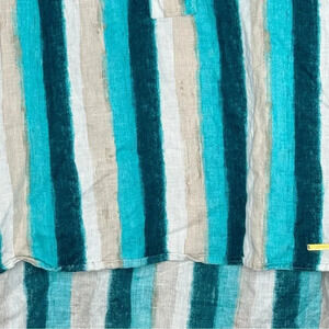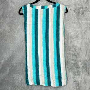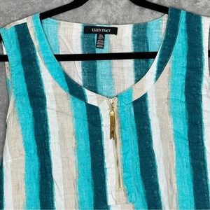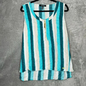Ellen Tracy XL Shirt Top Blue Striped Sleeveless Scoop Neck Linen High Low