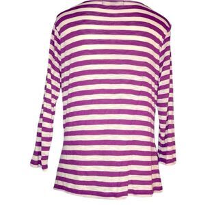 Ellen Tracy purple, striped top with draped neckline. Size large. In excellent preowned condition.