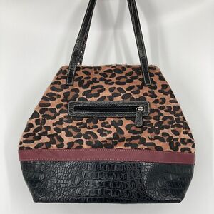Ellen Tracy Animal Print Black/Beige Purse/Shoulderbag Like New