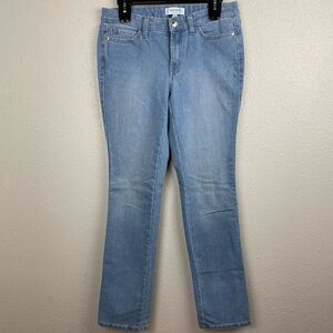 Classic pair of denim jeans by Ellen Tracy in excellent preowned condition. They measure 15.5 inches at the stretch fit waist and have a 31 inch inseam.