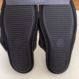Lovely slippers with a soft faux fur inner lining in a classic solid hue.