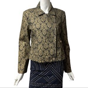 Ellen Tracy Gold Lame Graphic Denim Jacket