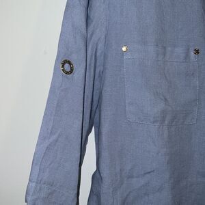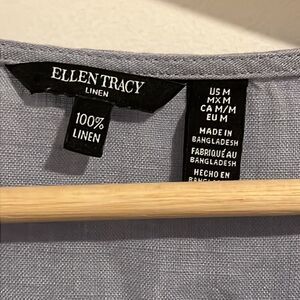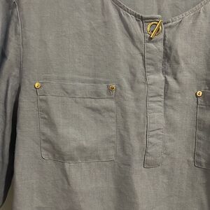 Ellen Tracy Linen 3/4 Sleeves Light Blue with Gold Detail Women’s Size M