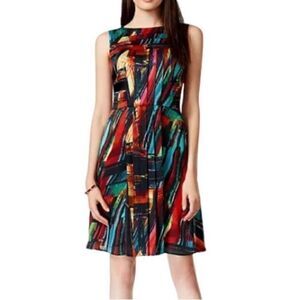 Ellen Tracy Multicolored Sleeveless Fit And Flare Dress, Size 6P