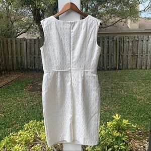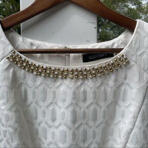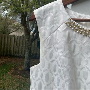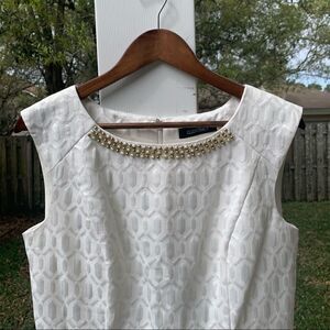 Ellen Tracy Sleeveless White Dress W/ Gold Beading