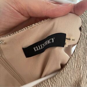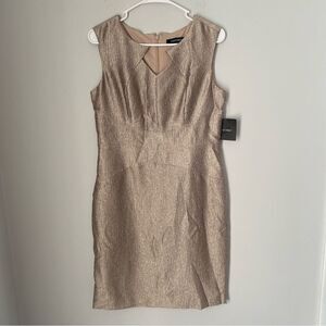 Ellen Tracy Women’s Mini Crinkle Gold Sweetheart Neck Sleeveless Sheath Dress 6