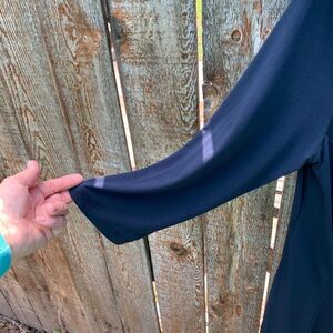 Ellen Tracy v-neck dress mid sleeve size large. Comes with belt. Dress missing one belt loop. Measurements are done flat and are approximate.