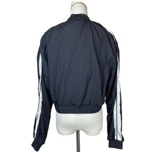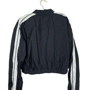 Retro style Ellesse cropped track jacket with zip up front and white stripes along the shoulders to the arm. Soft cotton lined, women's XL - the jacket appears to run small, please check measurements.