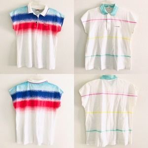 Style: top - button, collar top - short sleeves - a little faded - size tag missing - (red & blue color is in different listing) - see all pictures!