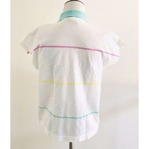 Ellesse | Polo Shirt Womens Size 0 White Stripe Collar Henley Short Sleeves