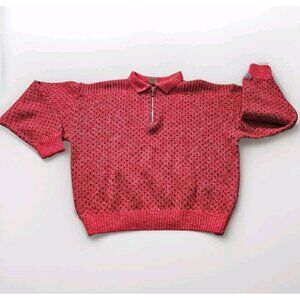 Ellesse Sweater Women US 18 Multicolor LS Vintage Preppy Wool Blend 1/4 Zip Boho