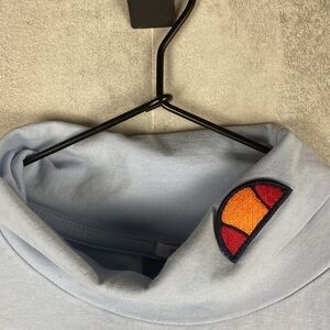 Ellesse light blue turtleneck. citrus embroidered logo on neck. Some pit discoloration as shown but not as noticeable in normal light or when layered