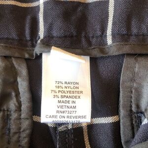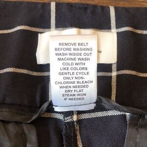 Super comfy Elle stretch bermuda shirt in size 2. Wide waist band to reduce muffin topš. Wear with or without a belt. 3 hook and button closure. Seamed front. Side and back pockets never used- still sewn shut so no stretching out. Comfortable stretch fabric really holds its shape. Dress up with heels or down with flats. EUC. Navy in color with white check lines. 11 inch inseam