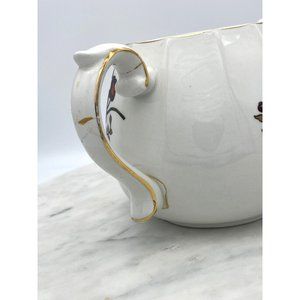 Condition: Used. The handle has broken and been repaired. There are four very visible spots where the break occurred. One is at the base of the handle and extends into the teapot, so I am not sure the teapot is liquid-tight. The lid does not come with this teapot. There are various chips in the pot and some of the gold trim is wearing off. Please notice the chipped area just above and to the right of the red flower on the side with the larger floral painting.