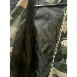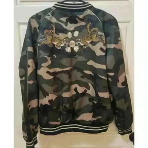 Elli White Camo Bomber Satin Jacket With Embroidered Tigers Size M/L