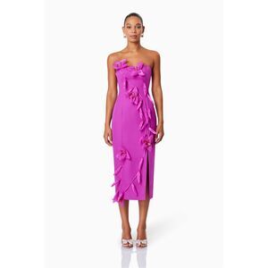 Elliatt Bethany Strapless Floral Midi Dress Purple Cocktail Wedding Guest size S NWT DETAILS & COMPOSITION